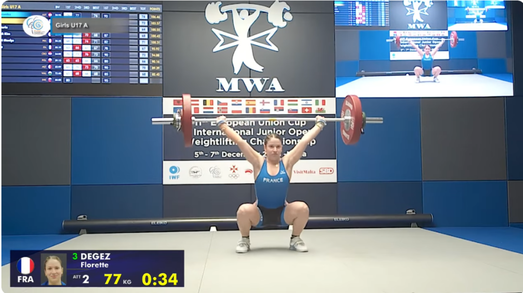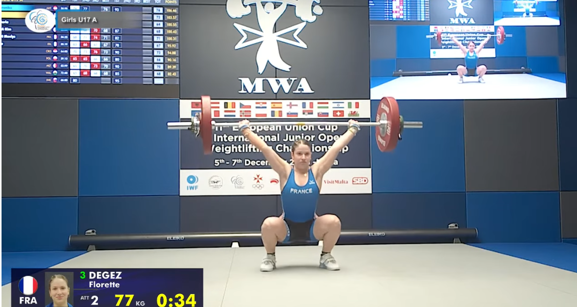 Dimanche 7 décembre Florette DEGEZ a participé en U17 à Malte à la Coupe de l’Union Européenne d’Haltérophilie 2025. La compétition se déroulait à La Valette et elle a tiré sur le plateau A.