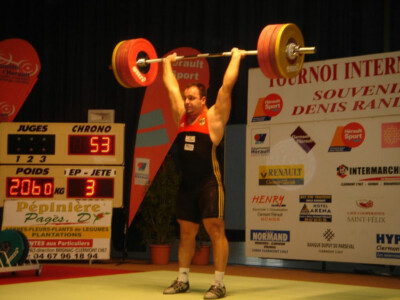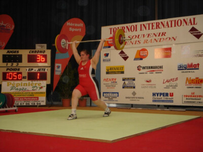 De retour des championnats du Monde victorieux, Venceslas Dabaya, a honoré de sa présence le Tournoi International et a mis un point d’honneur à l’emporter devant l’allemand Almir Velagic et le junior français Jean Baptiste Bardis. Venceslas Dabaya a obtenu une médaille d’argent aux jeux olympiques de Pékin en 2008. Vencelas DABAYA Vainqueur de l’édition 2006 du Tournoi Denis Randon, malgré la petite décompression suite au titre de champion du Monde, il a fait honneur au Tournoi, en réalisant des performances proches de ses records: 140 kg à l’arraché et 180 kg à l’épaulé jeté