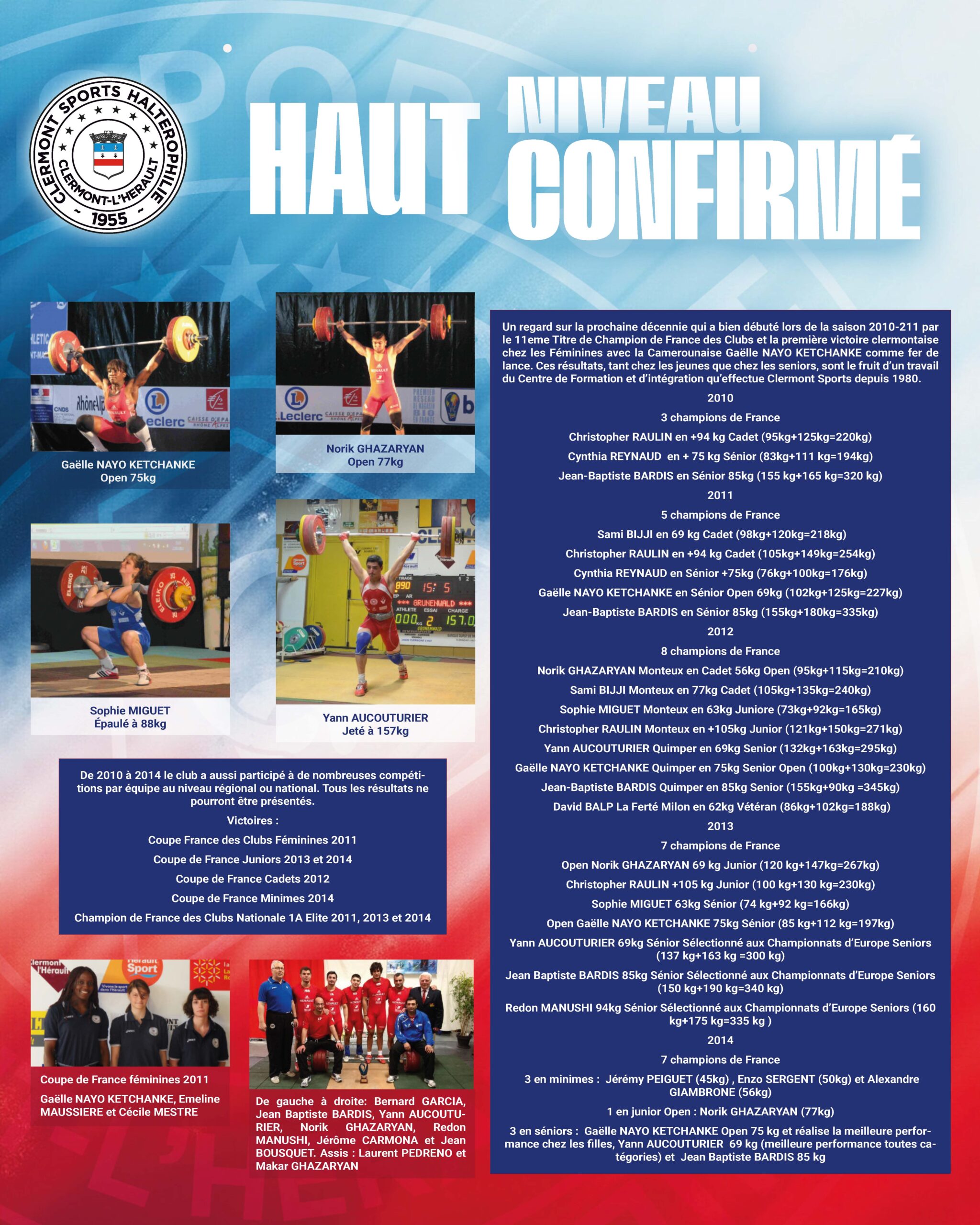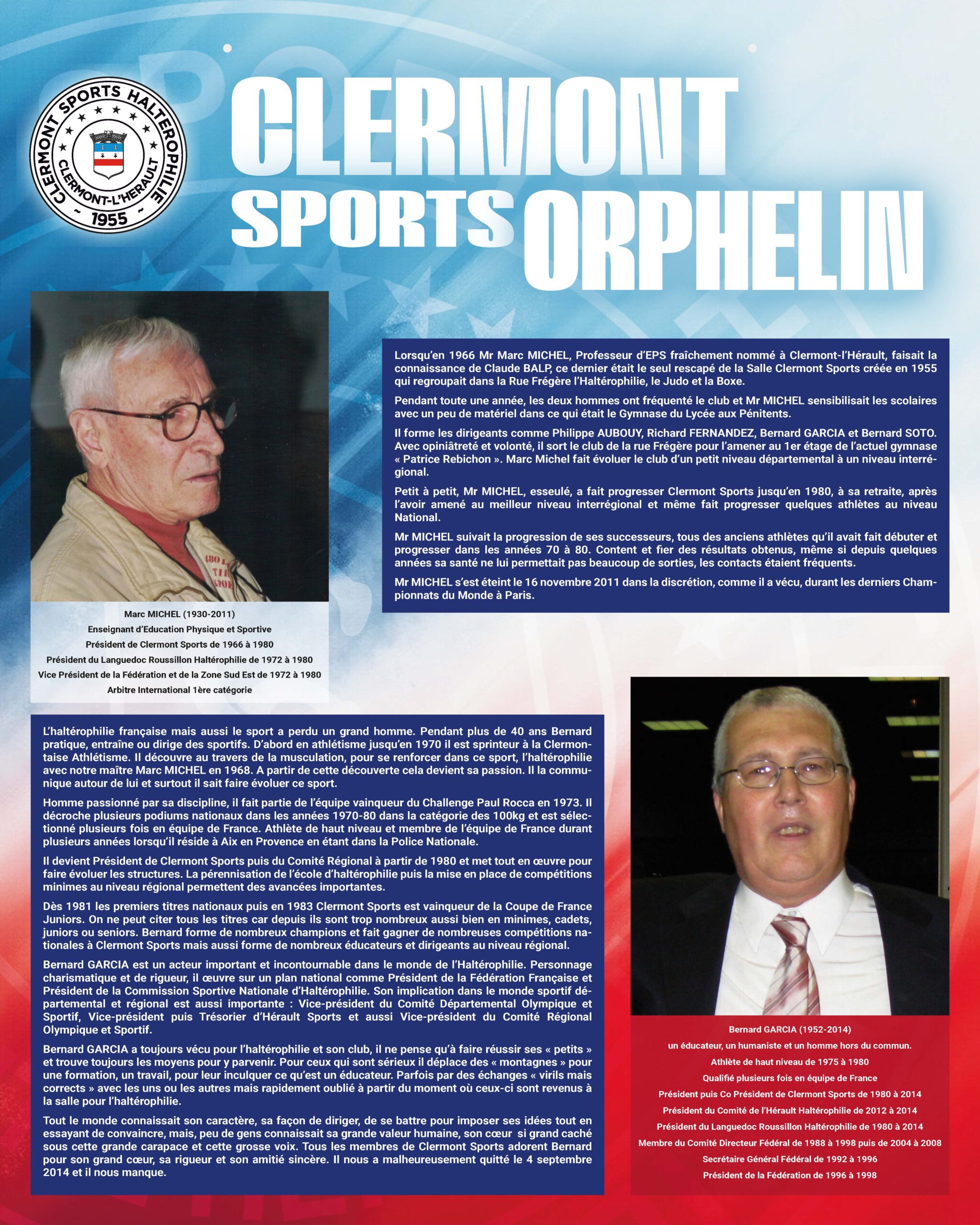 Déclaré à la Sous-Préfecture de Lodève le 2 mai 1955 N°175 Agréé par le Ministère de la Jeunesse et des Sports N°30/80 Centre Local d’Entraînement et de Formation N°SP CLE 35-93 Affilié à la Fédération Française d’Haltérophilie-Musculation Cliquer sur une image pour accéder à l’un des sites des structures ci-dessous Pour connaître les 70 ans de Clermont Sports vous consultez la galerie ci-dessous