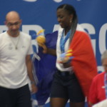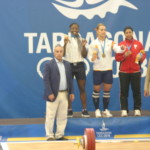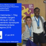Gaëlle NAYO KETCHANKE réussit deux médailles d’argent malgré une blessure au genou après le second arraché. 99kg à l’arraché et 129kg à l’épaulé jeté dans la catégorie des 75kg.